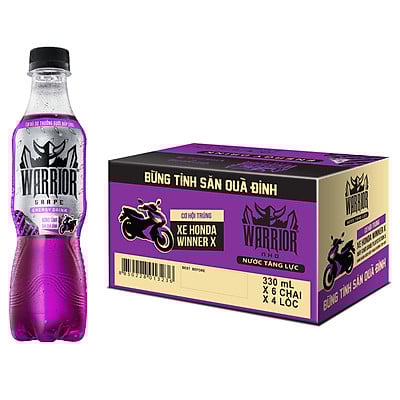 Sản phẩm nước uống tăng lực chất lượng từ thương hiệu Warrior. Nước tăng lực Warrior hương nho 330ml có hương vị nho thơm ngon, ngọt dịu mà không gắt cổ, bổ sung vitamin nhóm B (B3, B6, B12) cùng chiết xuất nhân sâm giúp thúc đẩy quá trình trao đổi chất, cung cấp năng lượng bền bỉ
